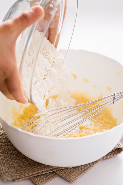 9. Смесете брашното и бакпулвера и ги пресейте с помощта на сито.