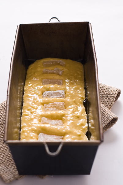 12. Изсипете готовата смес за кекса в намазаната форма за печене.